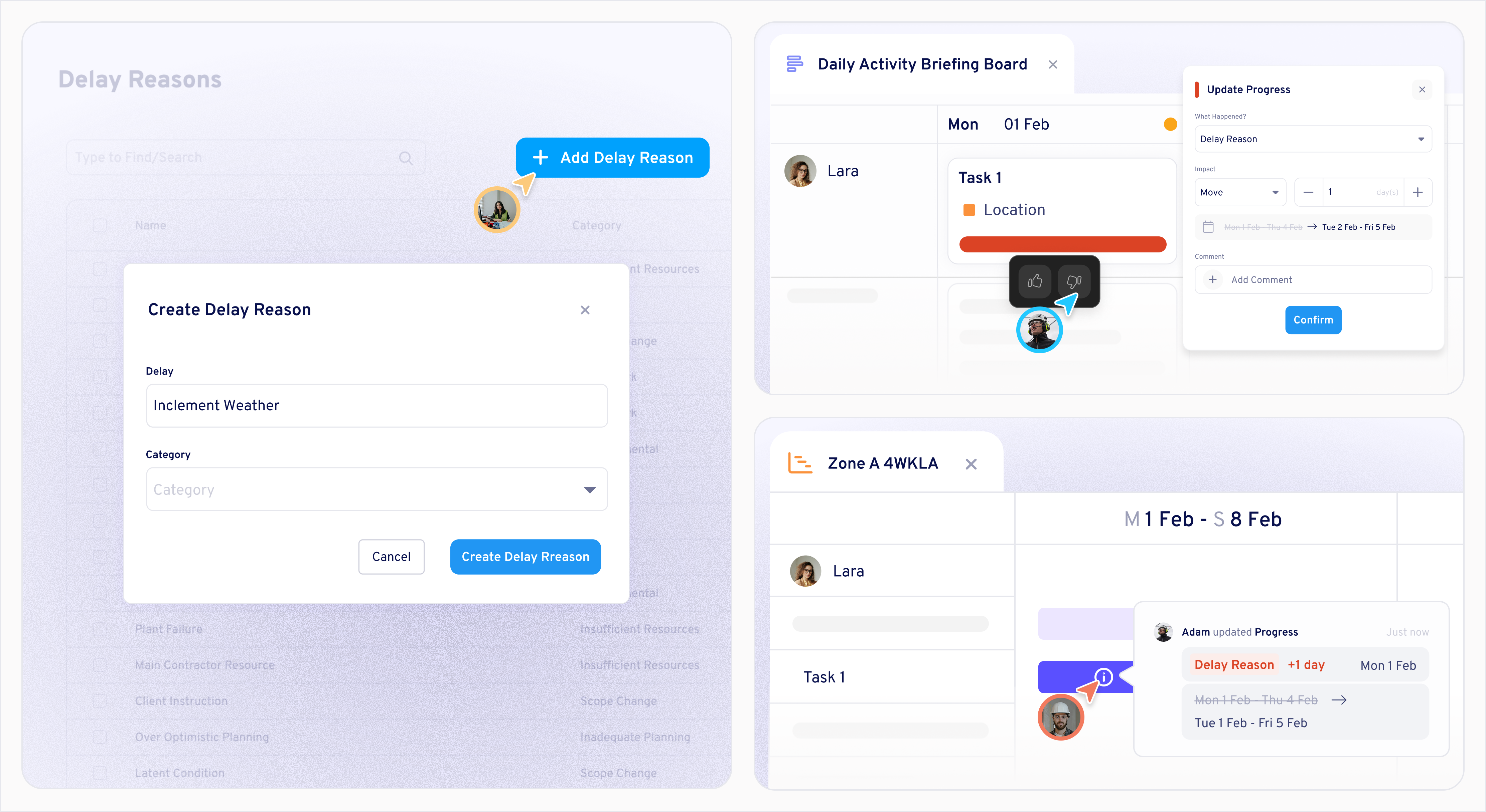 It is critical to build delay capture into the weekly rhythm. When activities are moved or marked incomplete, the team records the reason directly against the task. Over time, this creates a pattern of evidence that supports early problem-solving and compensation events.