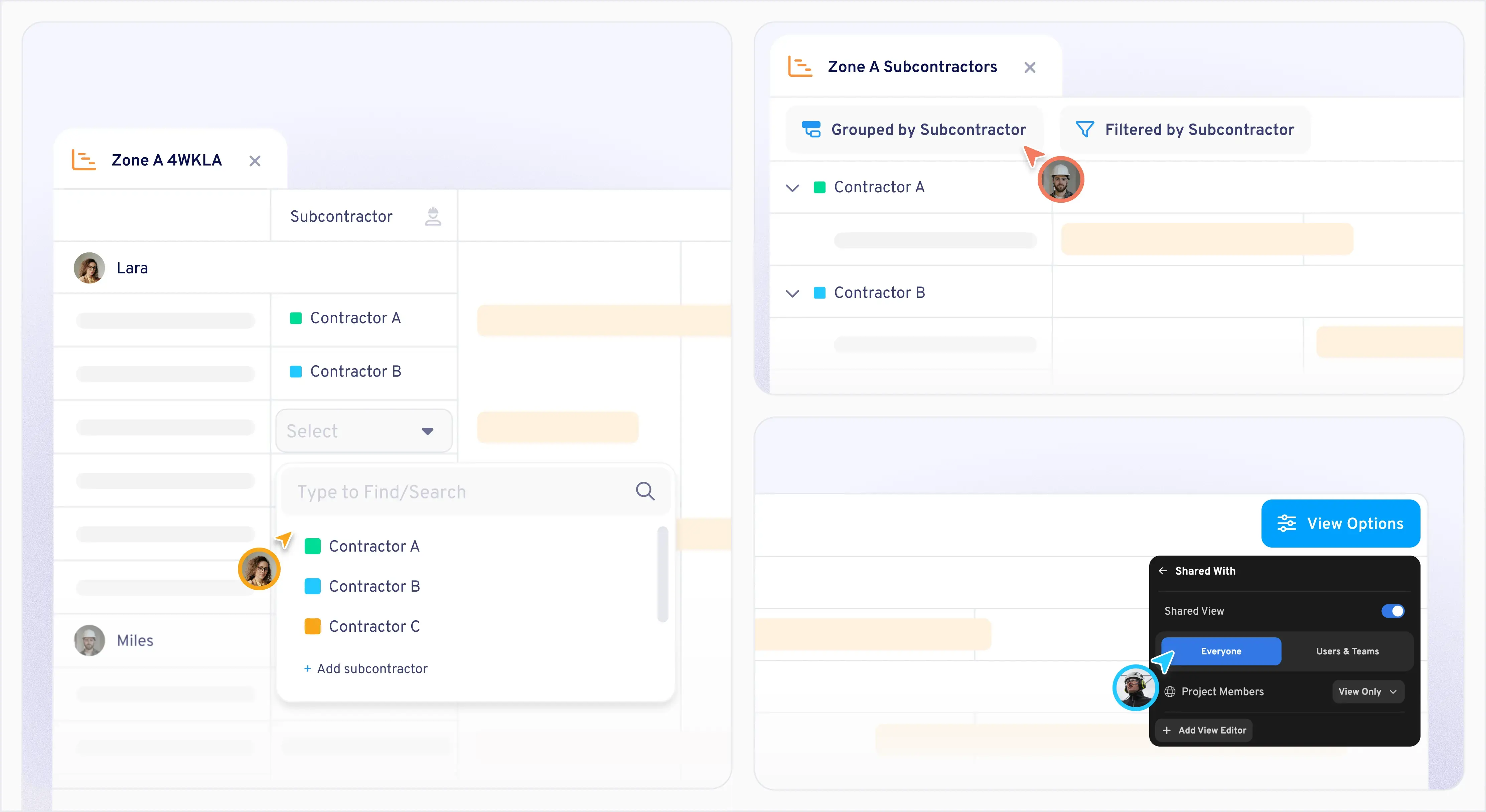Share these views with subcontractors either via direct access or regularly published exports. The key is ensuring subcontractors can see not just their own work but also the broader context, including what needs to happen before they can start, what depends on them completing, and where their work interfaces with others'.