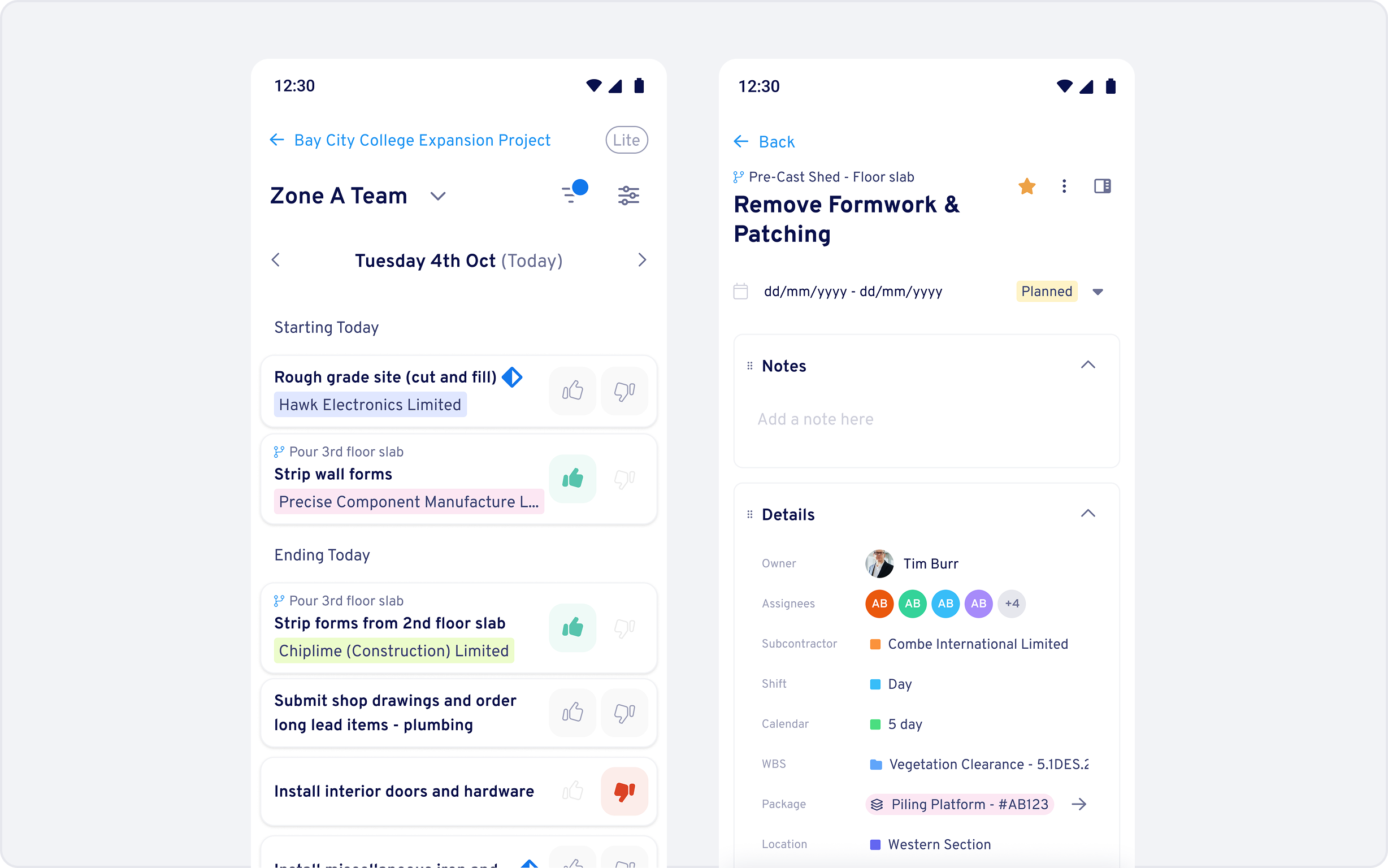 This daily feedback created immediate accountability. When subcontractors claimed delays weren't their responsibility, the team could pull up detailed day-by-day progress data showing exactly when tasks were marked as not progressing and what reasons were given. This level of detail supported commercial discussions and helped identify recurring issues that needed systematic solutions.