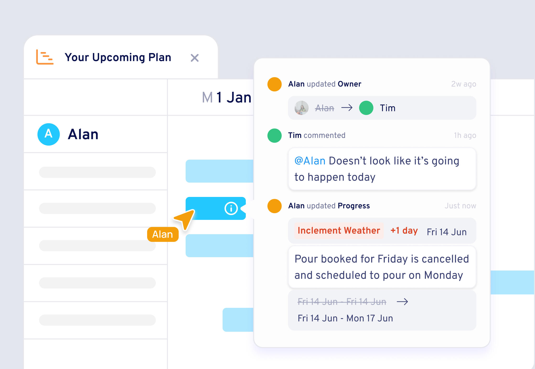 See updates instantly as colleagues make changes, add tasks, or update progress. No more waiting for updates or chasing down information.