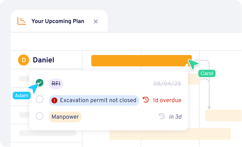 Our collaborative workspace allows engineers, supervisors, subcontractors, and project managers to work with the same live planning data.